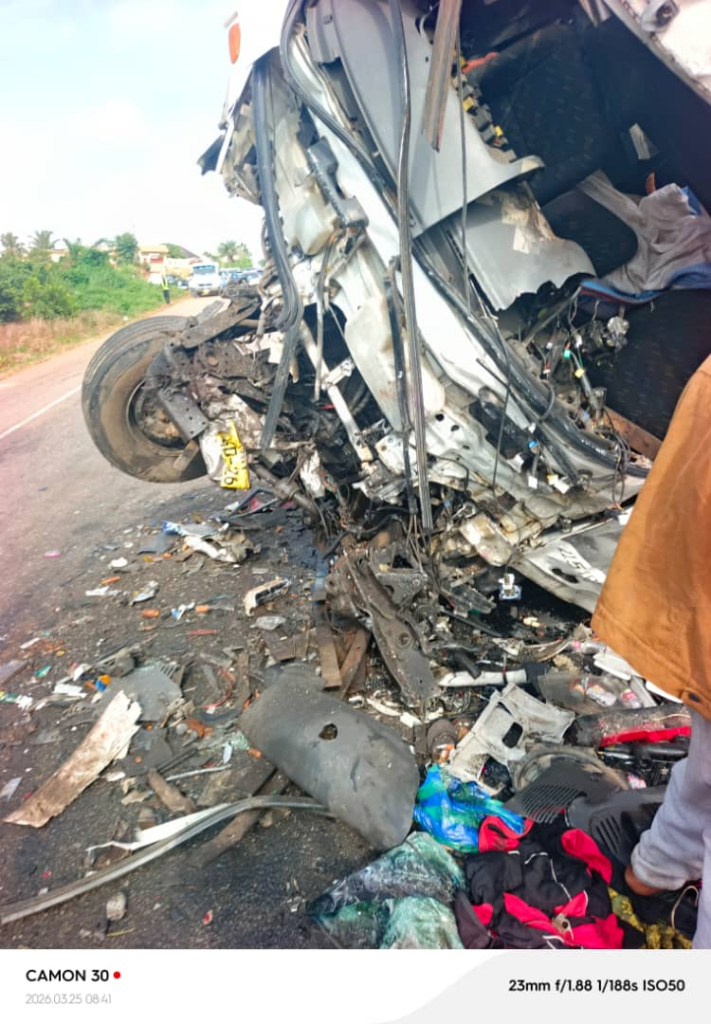 Reports indicate that the VIP bus, travelling from Accra to Kumasi, collided with a cargo truck carrying carrots from Kumasi to Accra.